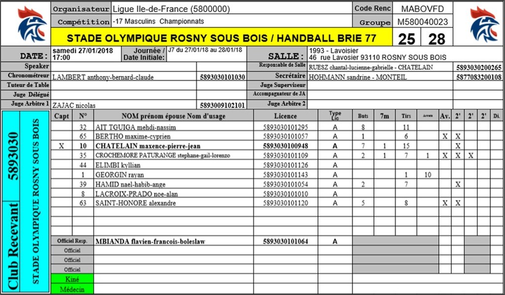 Drancy vs SOR HB (26.11.2017)